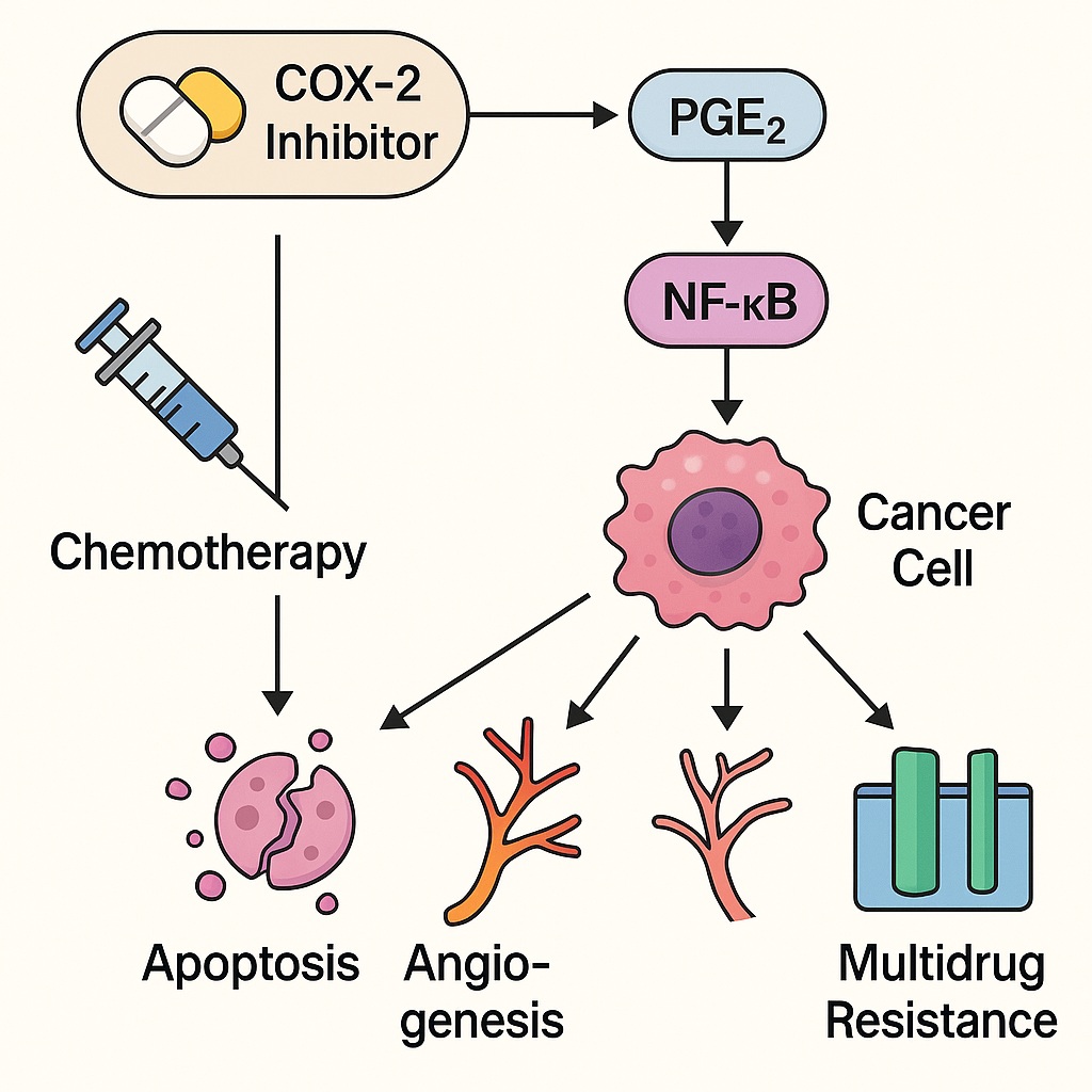 COX-2 inhibitors counteract this effect by suppressing PGE₂ synthesis and thereby attenuating NF-κB signaling. This rebalances the intracellular environment toward pro-apoptotic dominance, restoring chemotherapy-induced cell death.