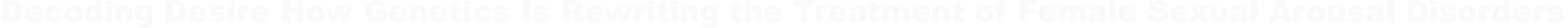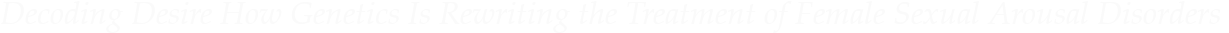 For too long, the treatment of female sexual disorders has been guided by guesswork, stigma, and half-understood biology. This study brings clarity where there was once conjecture. By decoding the genetic patterns that shape arousal and inhibition, it lays the foundation for a new era of precision sexual medicine.