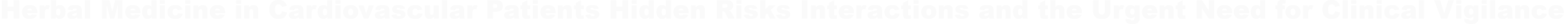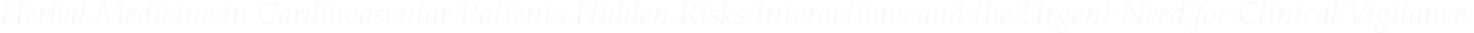 Herbal Medicine in Cardiovascular Patients: Hidden Risks, Interactions, and the Urgent Need for Clinical Vigilance