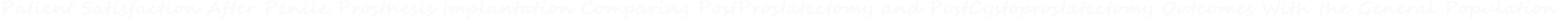 This study provides a nuanced and clinically valuable analysis of satisfaction following penile prosthesis implantation across three distinct populations: post-radical prostatectomy, post-radical cystoprostatectomy, and the general ED population. Despite anatomical, psychological, and functional differences, satisfaction rates remain remarkably high across all cohorts.