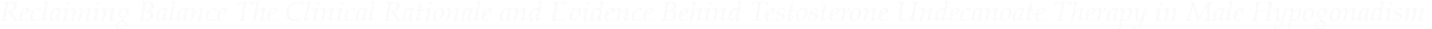The clinical landscape of testosterone replacement therapy (TRT) has evolved considerably over the last two decades. From oral formulations and short-acting injections to long-acting depot preparations, the goal has remained the same: to restore physiologic androgen levels safely and sustainably. Among these, testosterone undecanoate (TU) has gained increasing attention for its pharmacokinetic stability, tolerability, and ability to maintain steady serum testosterone concentrations without the peaks and troughs characteristic of earlier formulations.