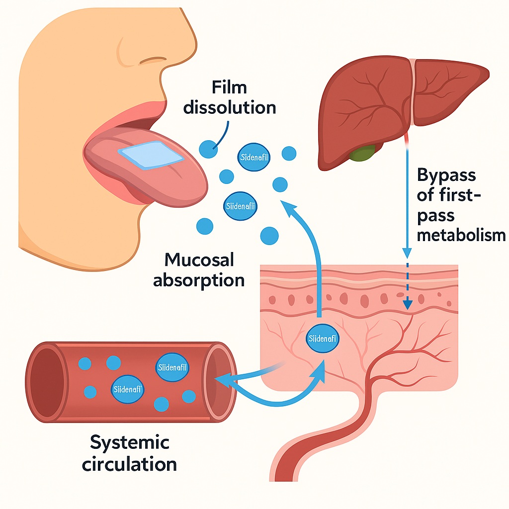 1. Bypassing First-Pass Metabolism: Absorption through the rich vascular network of the oral mucosa delivers sildenafil directly to systemic circulation, avoiding hepatic degradation.