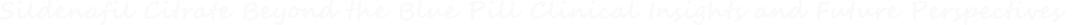 Sildenafil Citrate: Beyond the Blue Pill — Clinical Insights and Future Perspectives
