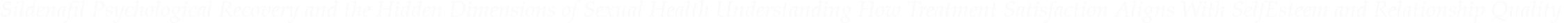 The article “Association between the Erectile Dysfunction Inventory of Treatment Satisfaction and the Self-Esteem and Relationship Questionnaire Following Treatment with Sildenafil Citrate for Men with Erectile Dysfunction” offers a sophisticated exploration of this theme. It evaluates how satisfaction with sildenafil treatment correlates with patients’ self-esteem and relationship quality—two domains rarely captured in traditional ED studies. Through its use of the Erectile Dysfunction Inventory of Treatment Satisfaction (EDITS) and the Self-Esteem and Relationship (SEAR) questionnaire, the study bridges the gap between pharmacologic efficacy and psychosocial recovery.
