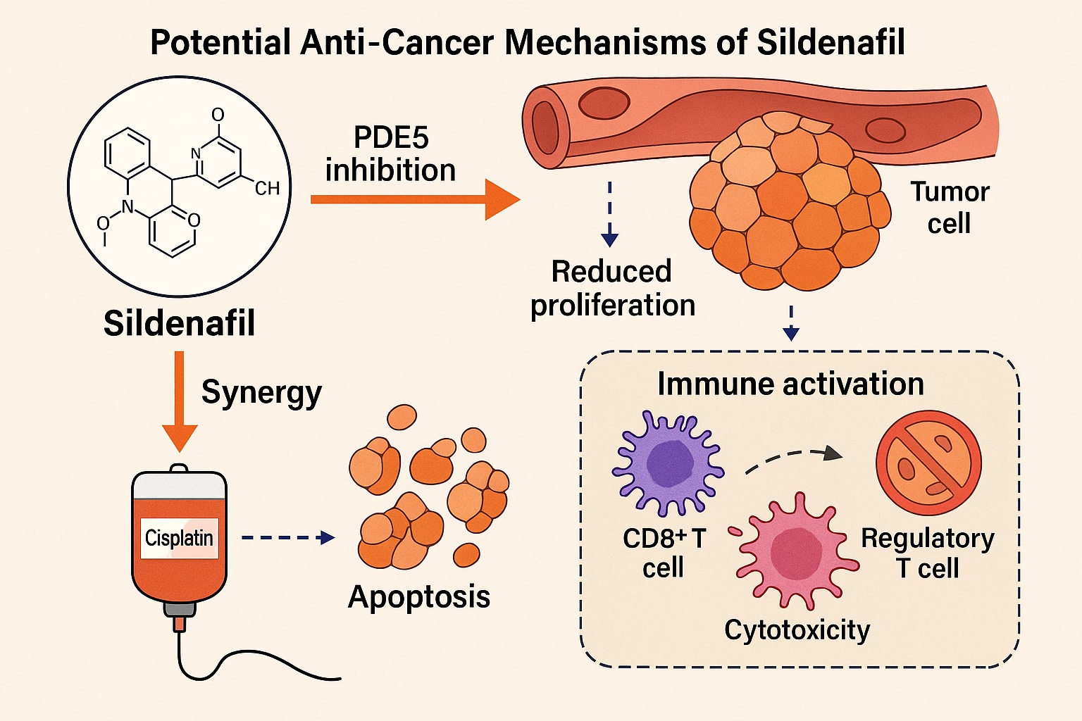 The idea of repurposing sildenafil for cancer treatment is not entirely new, but the emerging body of evidence adds both mechanistic clarity and clinical feasibility. Its well-documented pharmacology, oral bioavailability, and favorable safety profile make it an attractive adjunct to existing chemotherapeutic regimens.