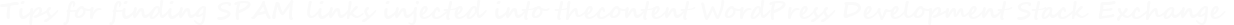 I’m working on a client’s site and I noticed that posts have a hidden <div> filled to SPAM links to dick pills, etc. Hoping to get lucky, I searched for some of the keywords in the database tables, but found no matches. I also searched the code in all the files, and also found no matches.