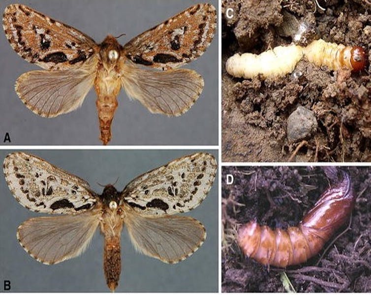 Ghost moths are relatively large moths known for their reduced adult mouth parts and distinctive subterranean larvae, which are root-feeders of grassland soil, meaning they can feed on any parts of a plant.